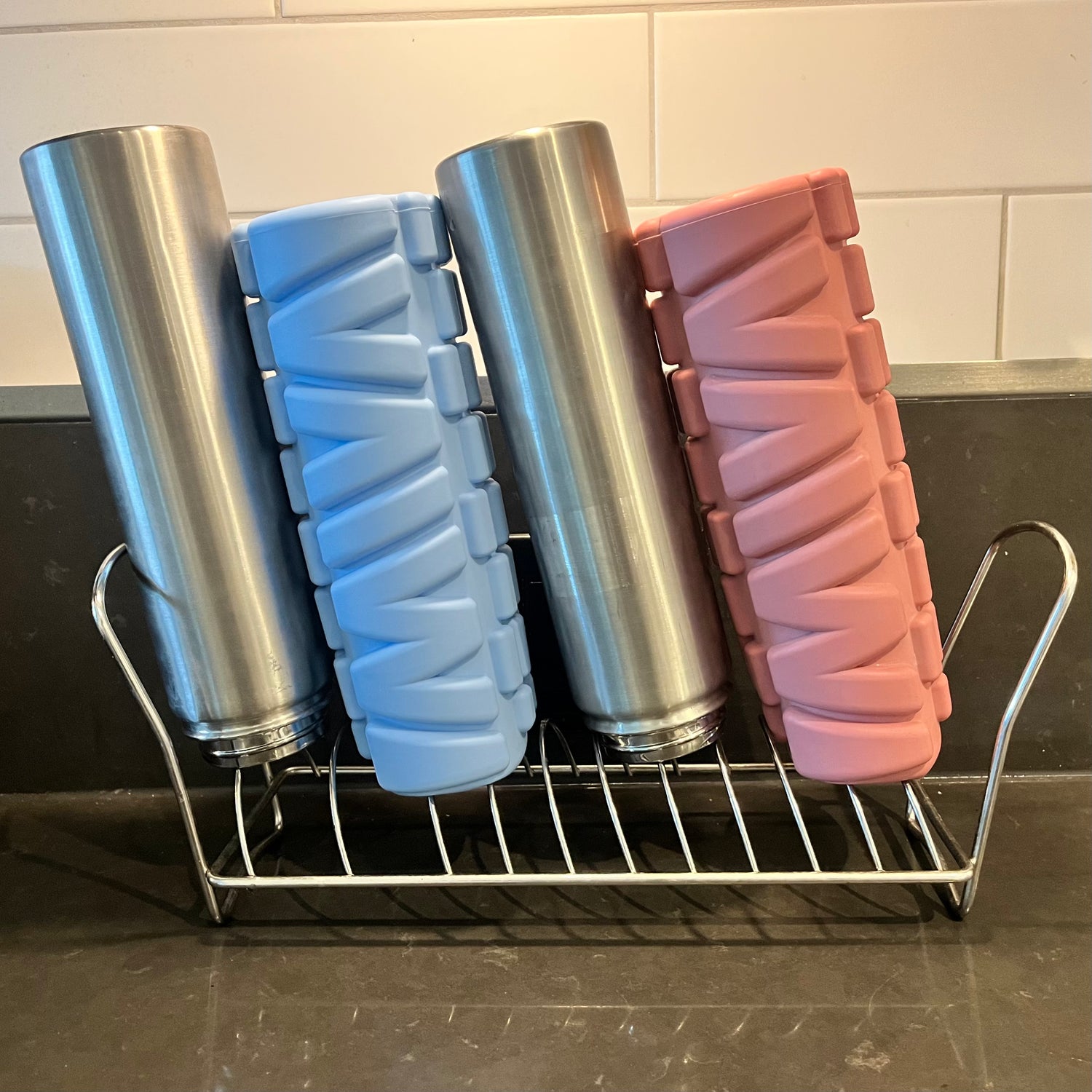 After the dishwasher cycle, the combination of the expanded sleeve from the heat, and the water in between the sleeve and reservoir should make It very easy to remove the sleeve. Place both the reservoir and the sleeve on a drying rack face down and allow to dry overnight for best results. Inserting the bottle back into the sleeve before both items are dry could result in unwanted slippage, so it is best to wait until the unit is completely dry before reassembling. Once both parts are dry, simply set the sleeve on a flat surface bottom down, and slide the reservoir down into the sleeve. The natural elasticity of the sleeve will keep It in place, and you'll be ready to roll in no time!