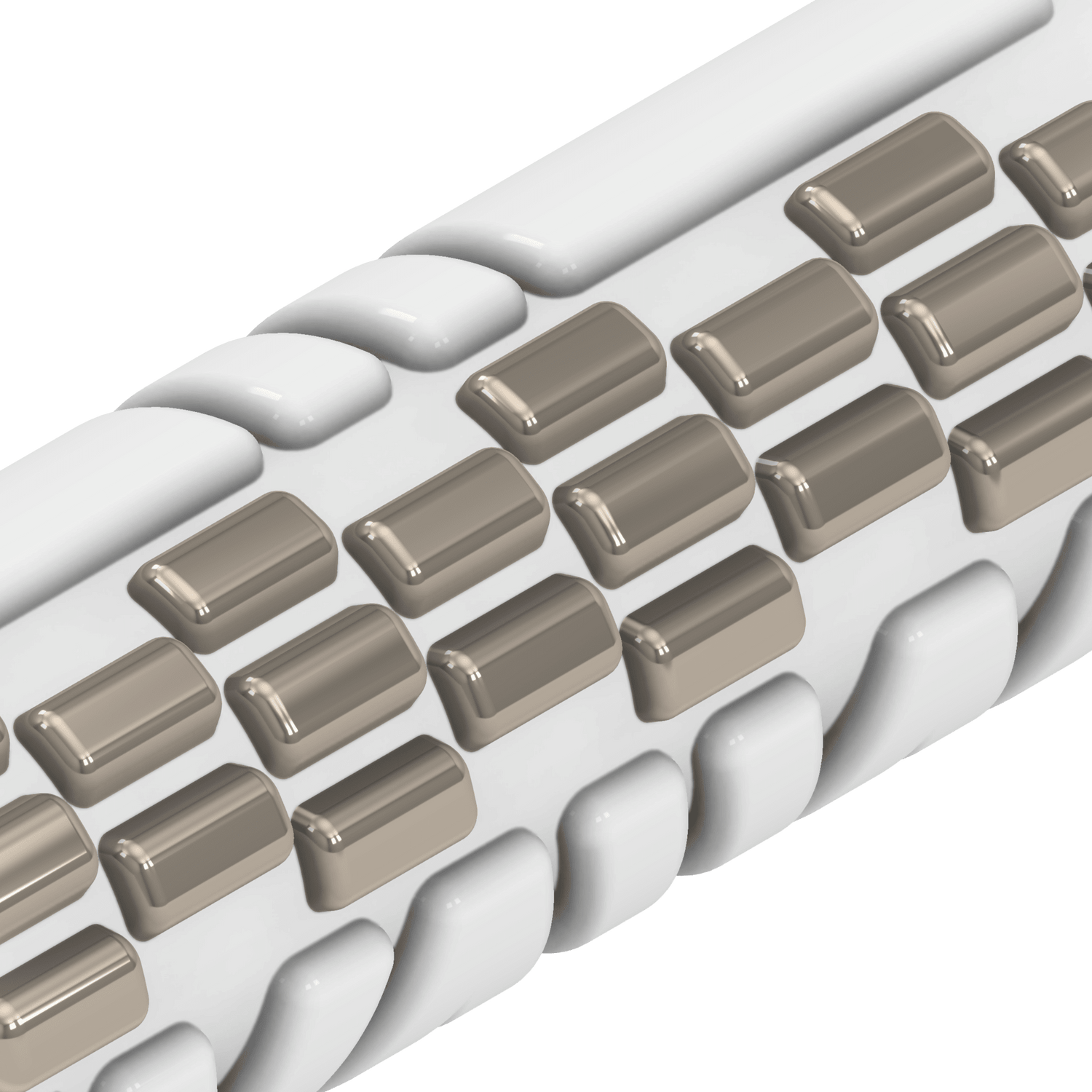 The premiere section of the hand for detailed massaging, human fingers provide a narrow enough width to pinpoint the smallest problem spots in muscles, with elongated surfaces to keep the application of pressure going throughout the roll. As branding composed of letters that can be modeled with the digits of the hand, the MIVA digit face provides a well balanced massage for all parts of the body.